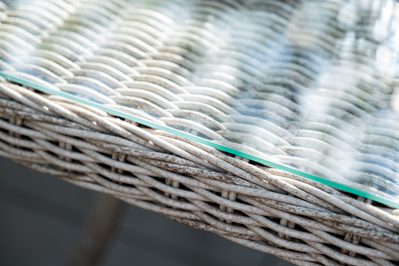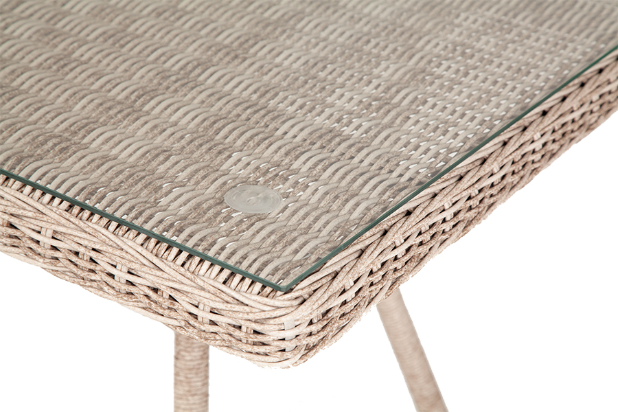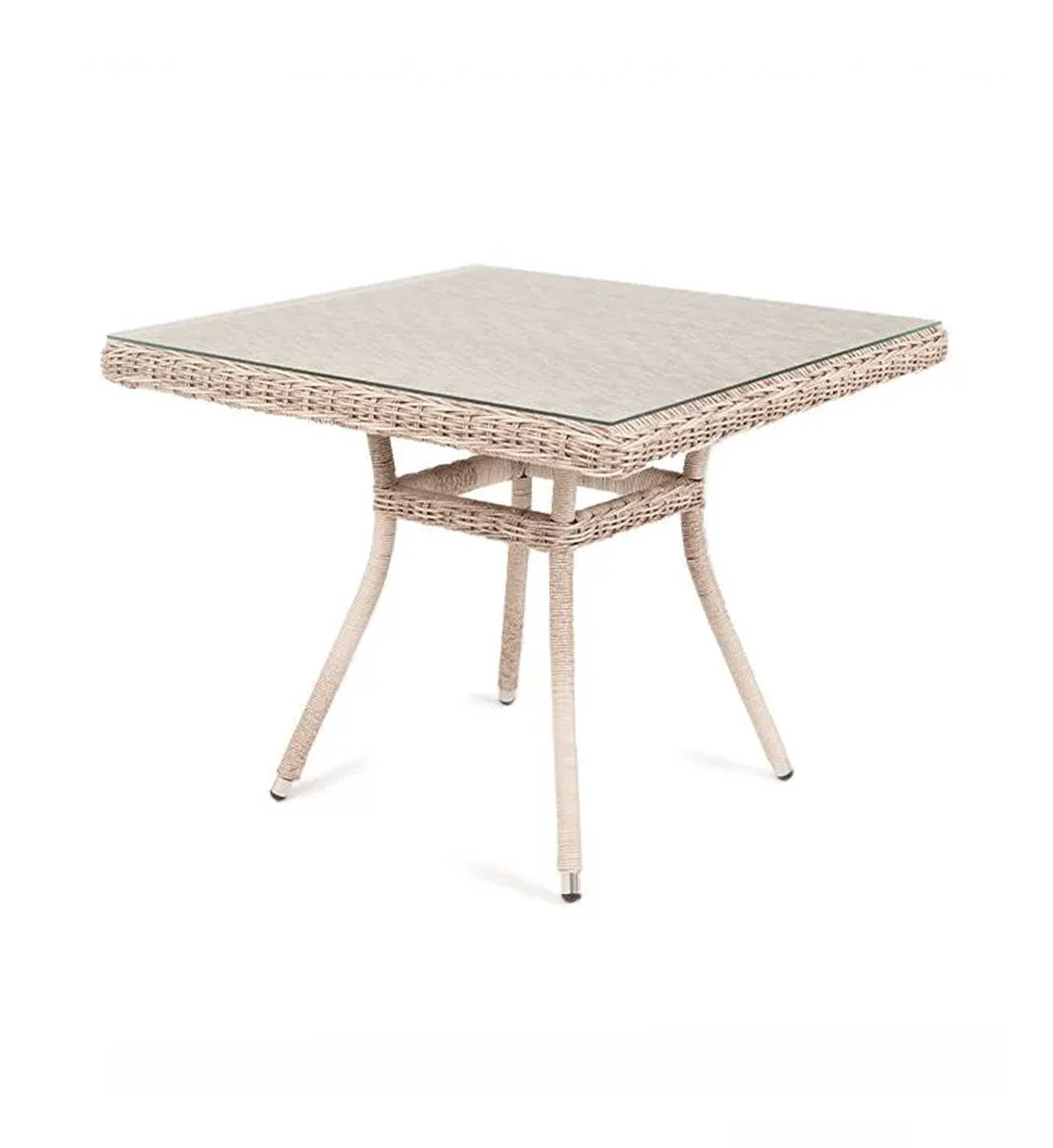 Плетеный стол для сада из искусственного ротанга "Арлиш" бежевого цвета идеально вписывается в обеденное пространство на открытом воздухе. В основе стола скелет из алюминия, столешница выполнена из ударопрочного стекла толщиной 5 мм. Габариты: 900×900×750 мм, которые позволяют уместить до четырех человек.