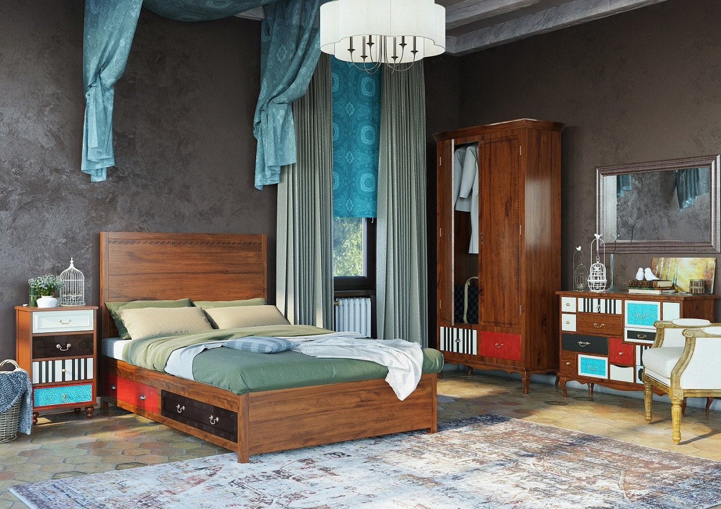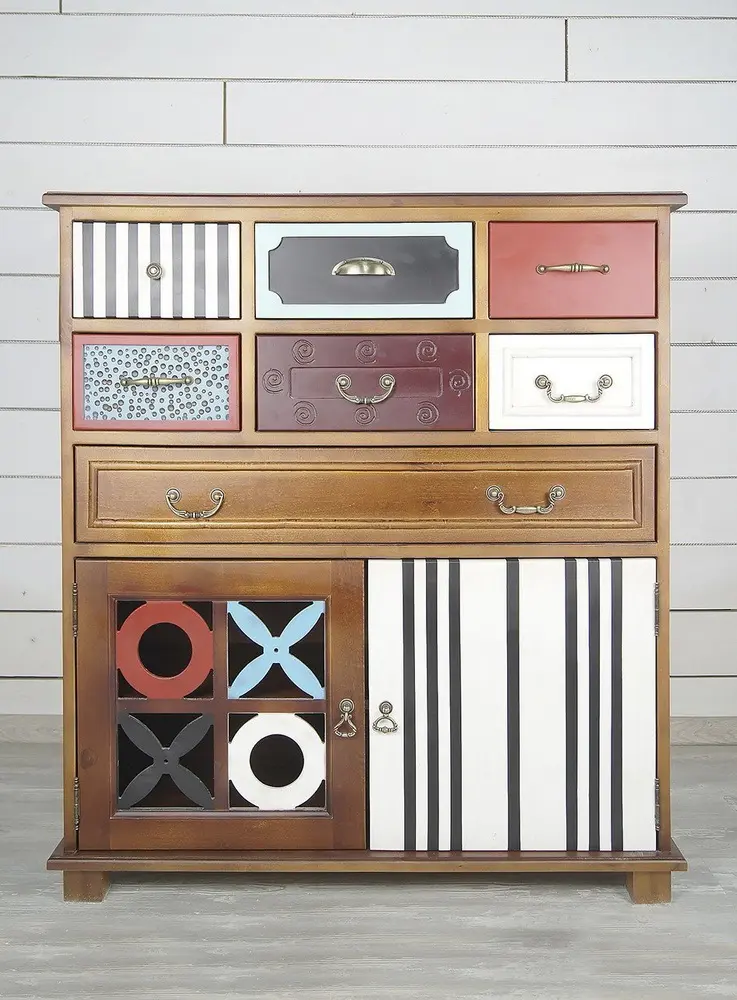 Коллекция дизайнерской мебели «Гуашь» включает в себя шкафы, письменные столы, комоды, кровати и консоли для спальни, гостиной, прихожей. Особенность предметов из этой коллекции – фасады с сочетанием разных цветов, декоративных рисунков и ручек.