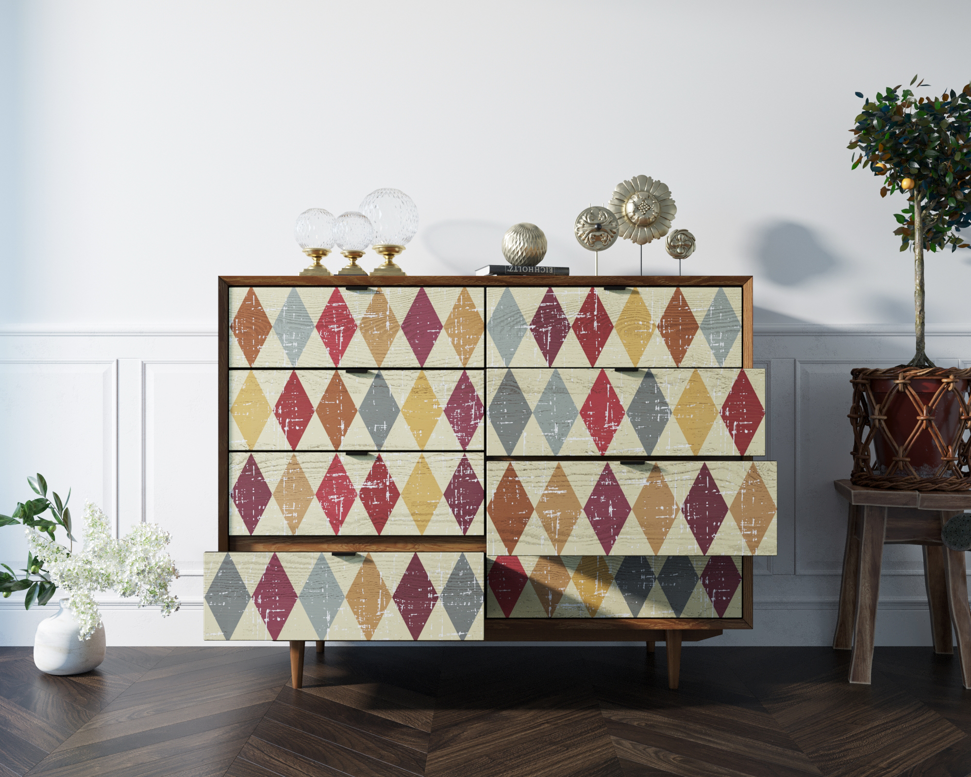 Комод "Bruni print" изготавливается вручную из шпона ясеня.