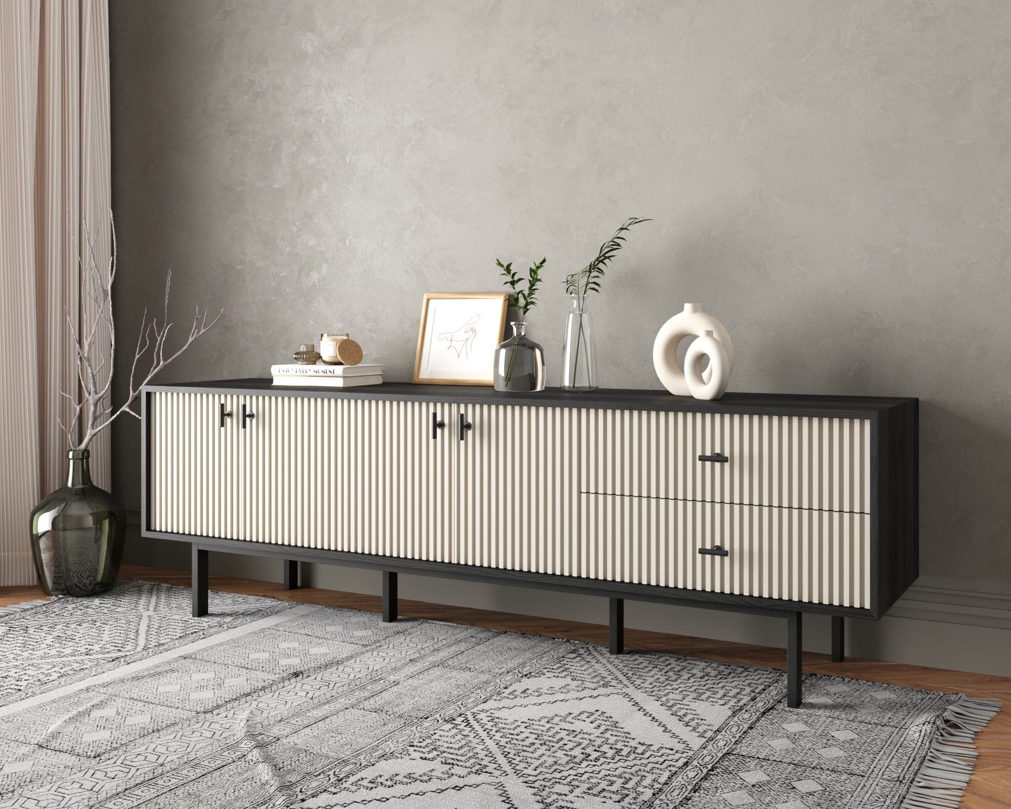 Мы предлагаем различные варианты исполнения: с фасадами или с фасадами и ящиками. Петли с доводчиком обеспечивают плавное закрывание дверей, а шариковые направляющие без доводчика позволяют легко выдвигать ящики. Комод поставляется в сборе, что упрощает его установку.