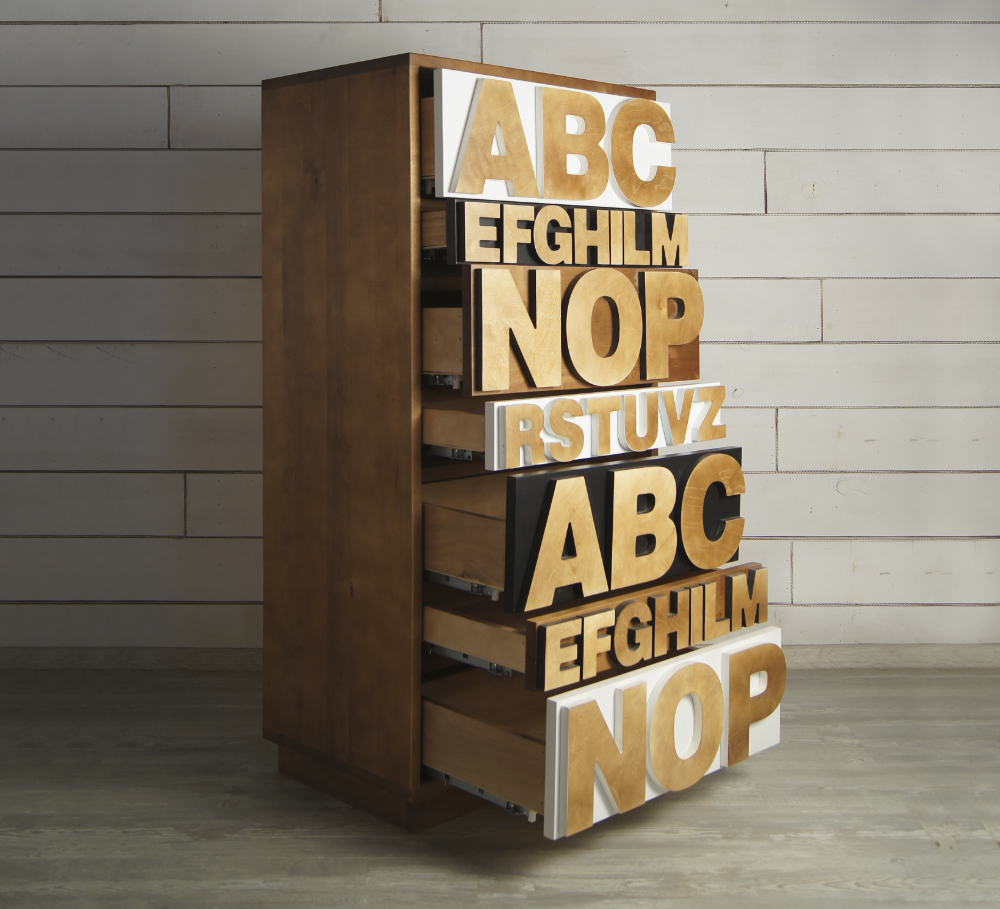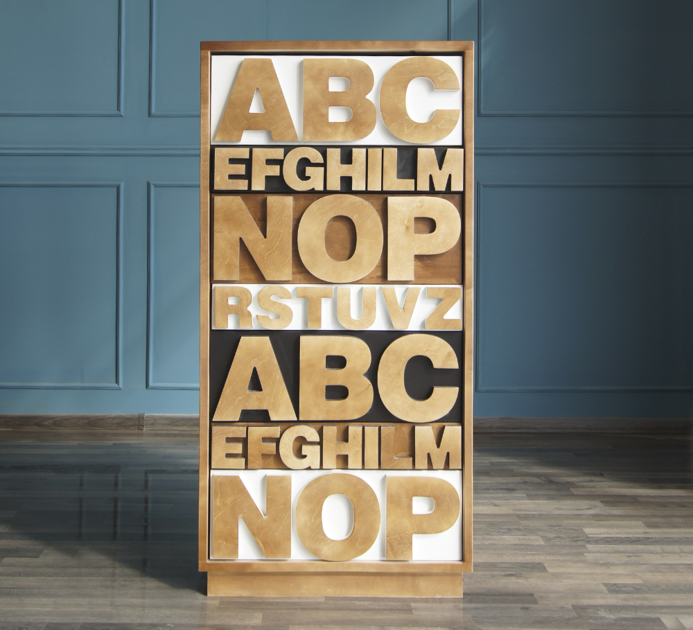Комод "Alphabeto Birch" снабжен 7 ящиками разных форм,