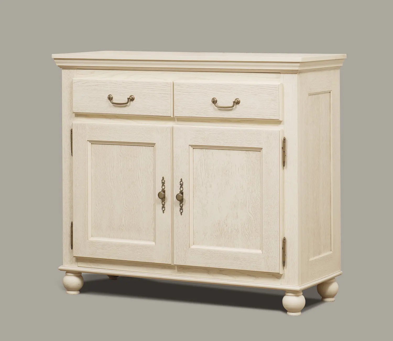 Материал - сосна, задняя стенка, дно ящиков - ДВП белого цвета, вставки в боковинах и дверях (филенка) - фанера (6 мм).
