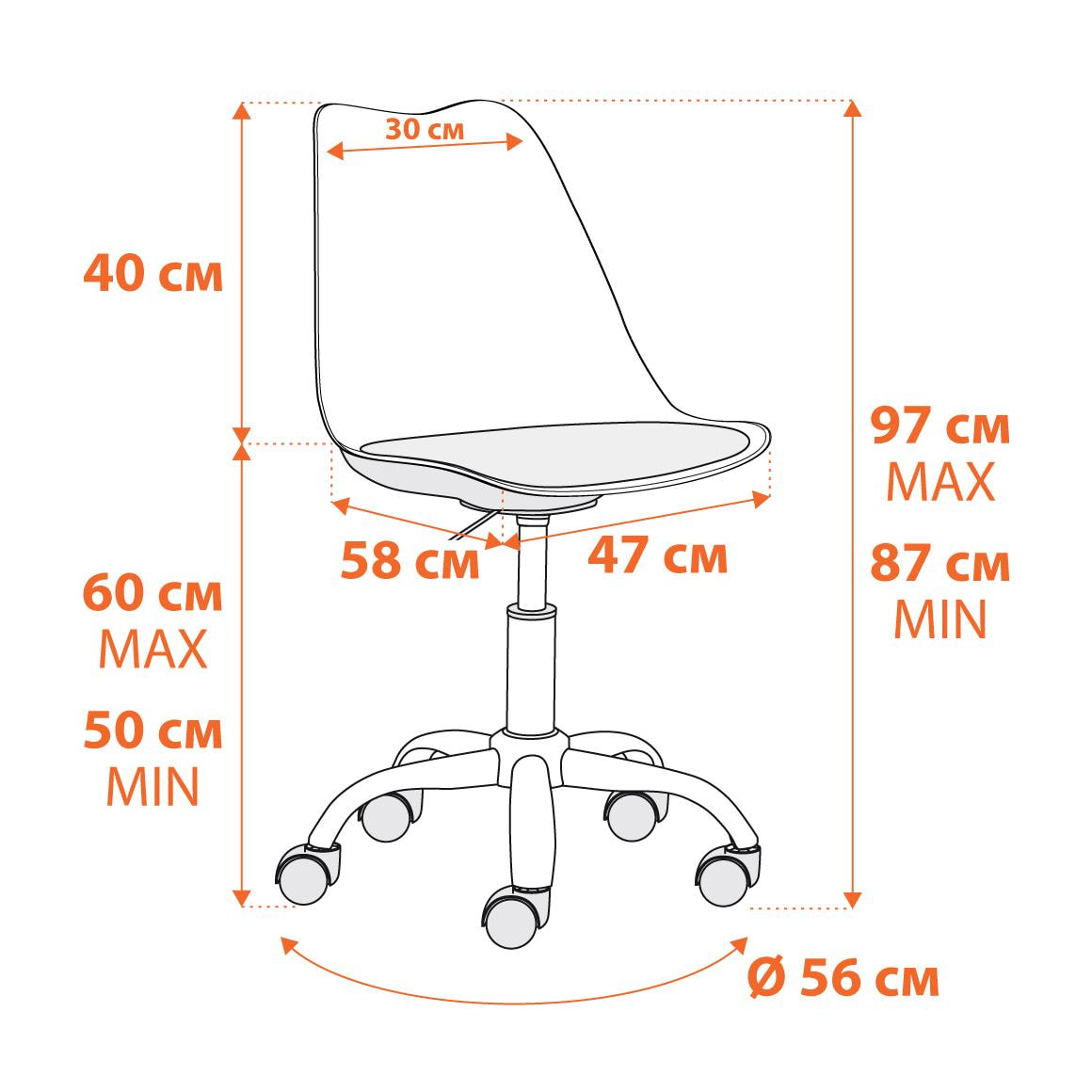 - Отделка: металл/пластик/PU, 58 x 47 x 97см, Black (черный) / Chrome (хром)