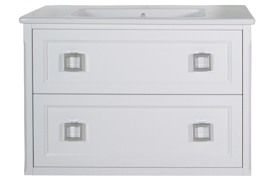 Оригинальный дизайн подстолья с ящиками позволяет ему гармонично вписаться в любой интерьер. Белая мебель для ванной создаёт ощущение чистоты и свежести, а также визуально расширяет пространство.