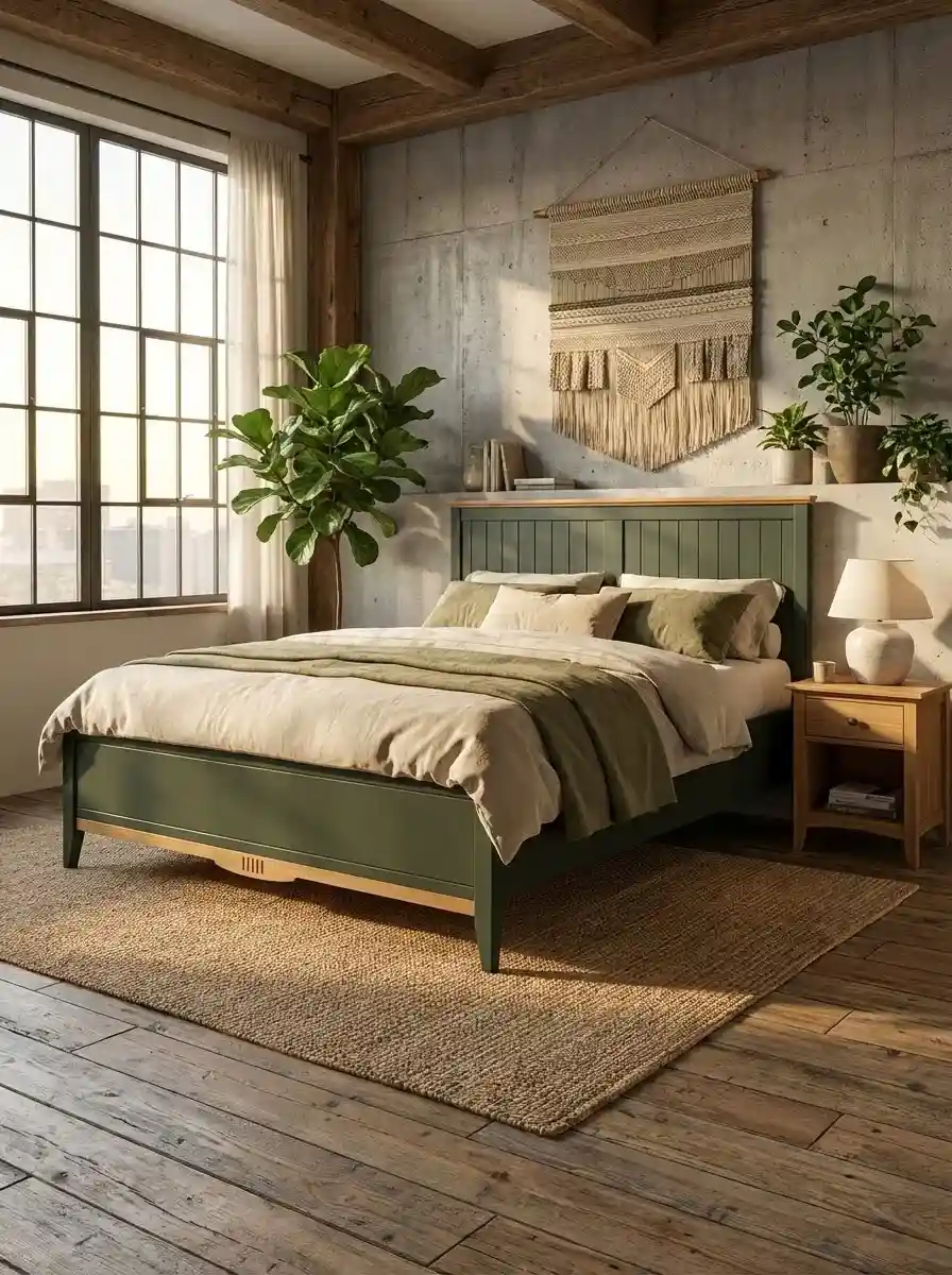 В дизайне кровати «Пенни» 160×200 удачно сочетаются два выразительных оттенка: корпус выполнен в насыщенном зелёном цвете RAL 6020, а изголовье и изножье украшены декоративными элементами в отделке «антик», сквозь которую мягко проступает натуральная древесная текстура.