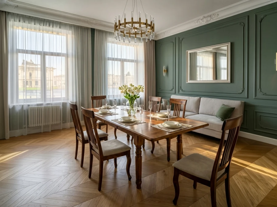 галочкаВысокие декоративные карнизы.