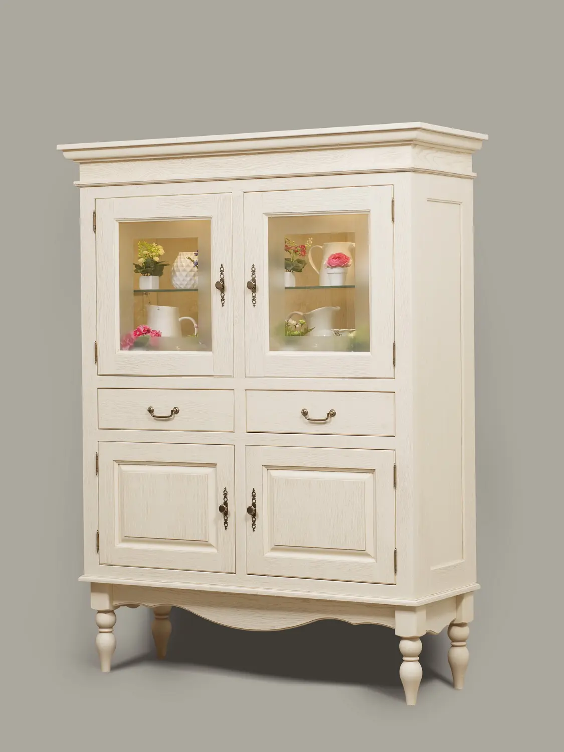 Цена указана за изделие в бесцветном лаке. На титульной фотографии цвет серванта - крем эмаль на шпоне дуба. Стоимость зависит от выбранного покрытия. При заказе мебели в составном цвете цена считается по более дорогому.