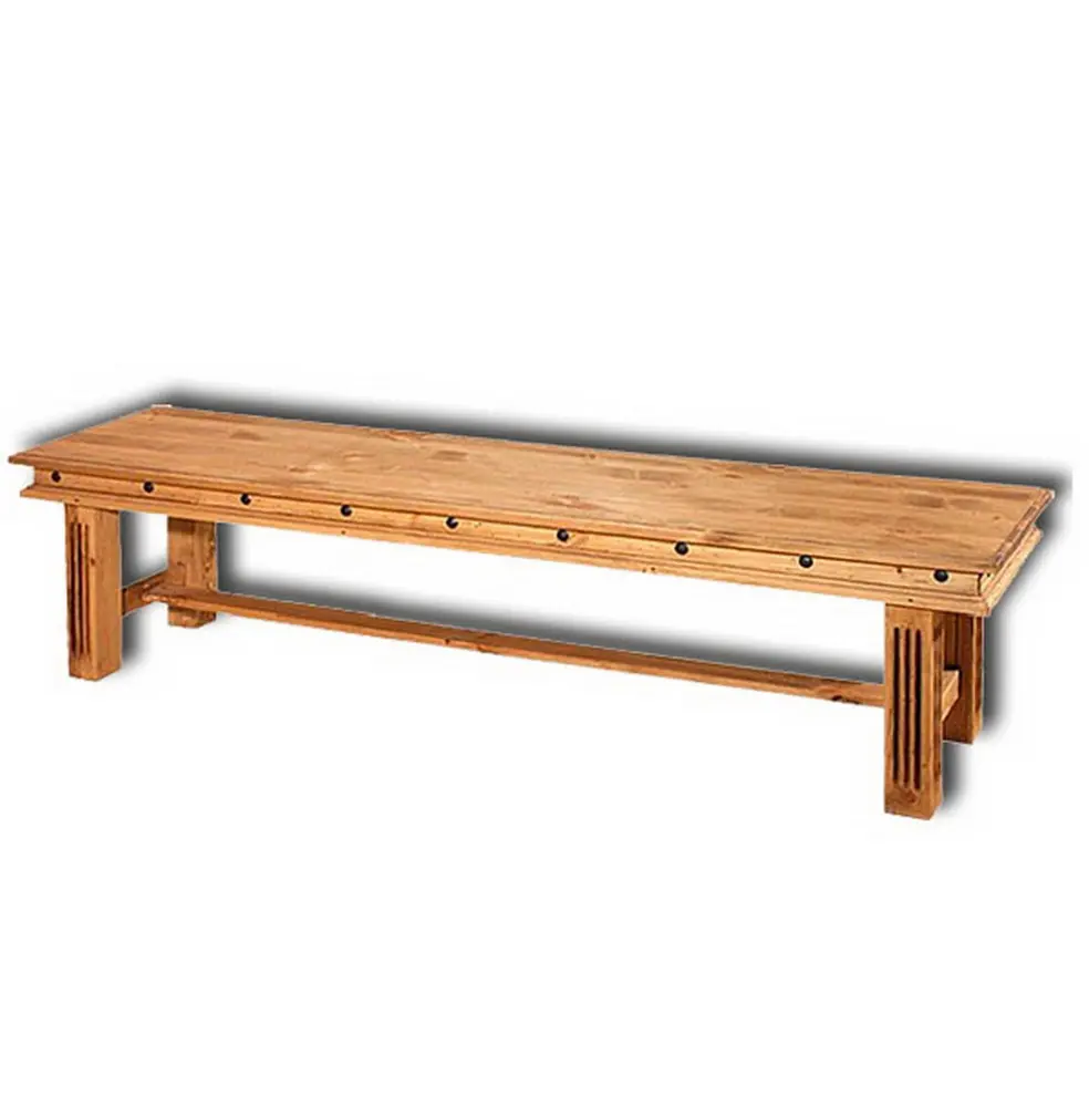 Скамья выполнена из натурального прочного материала массива сосны,с эффектом искусственного старения. Поверхность покрыта воском. Скамья оформлена с сохранением естественной расцветки, декорирована резными вставками на ножках и контрастными элементами.