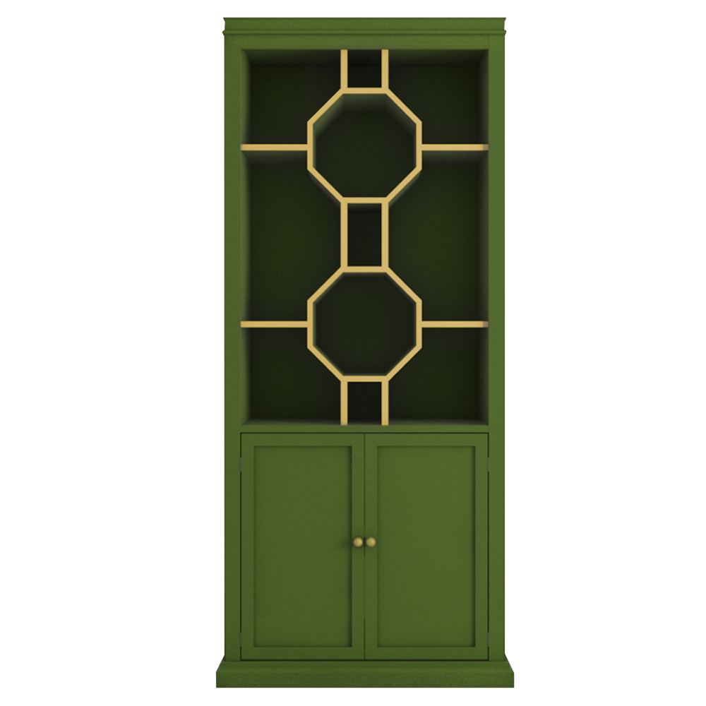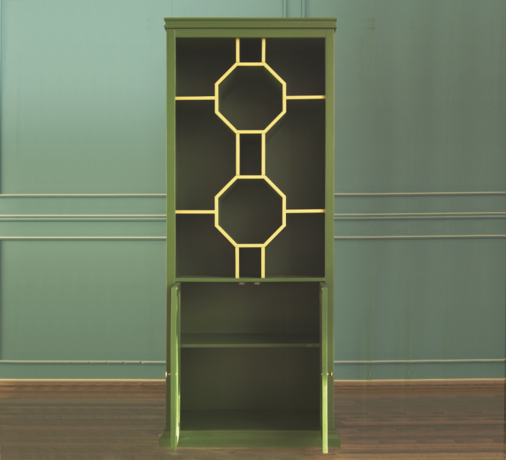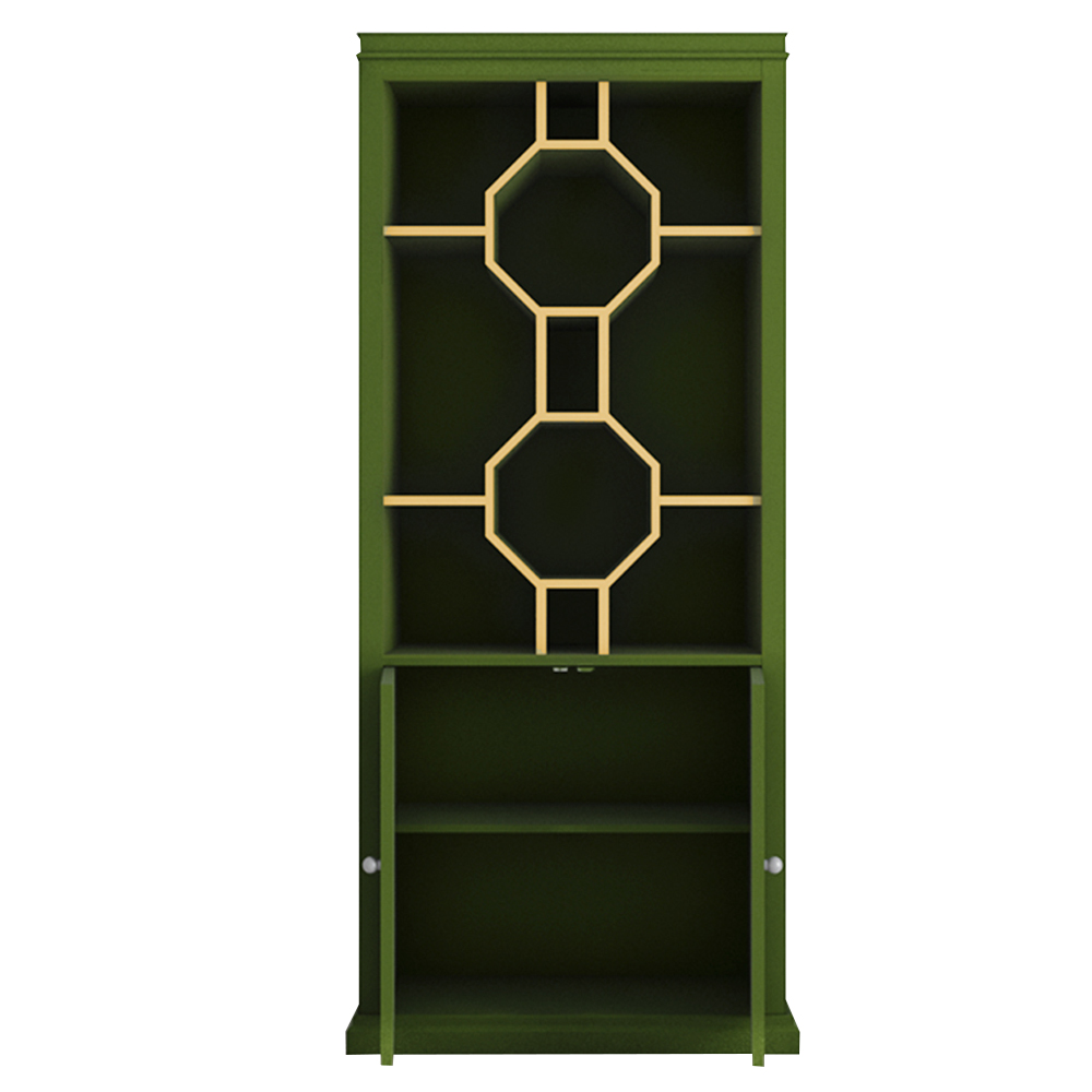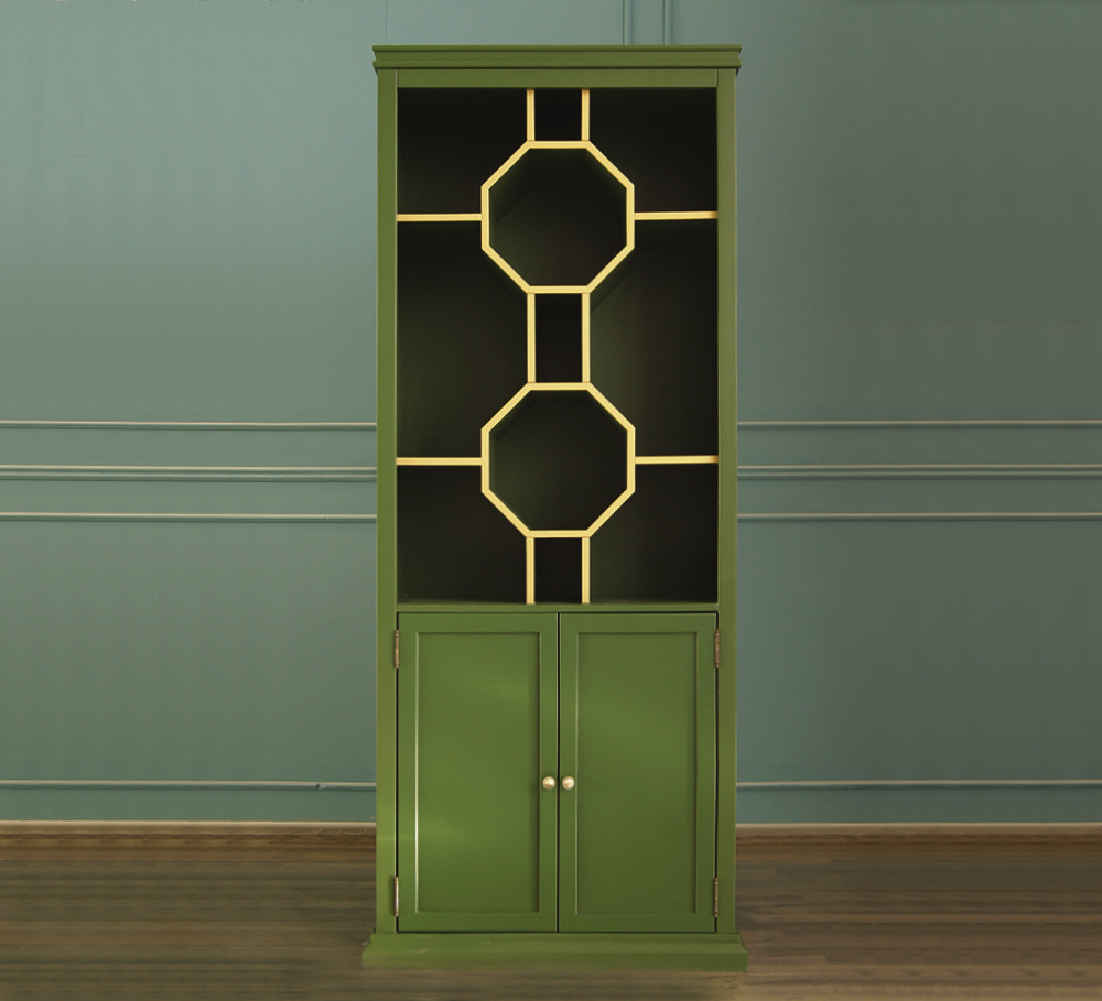 Стеллаж 2 дверный. Приятный природный оттенок молодой зелени с оригинальными золотыми ячейками и такой же золотой фурнитурой привнесет яркий акцент в любое жилое пространство.