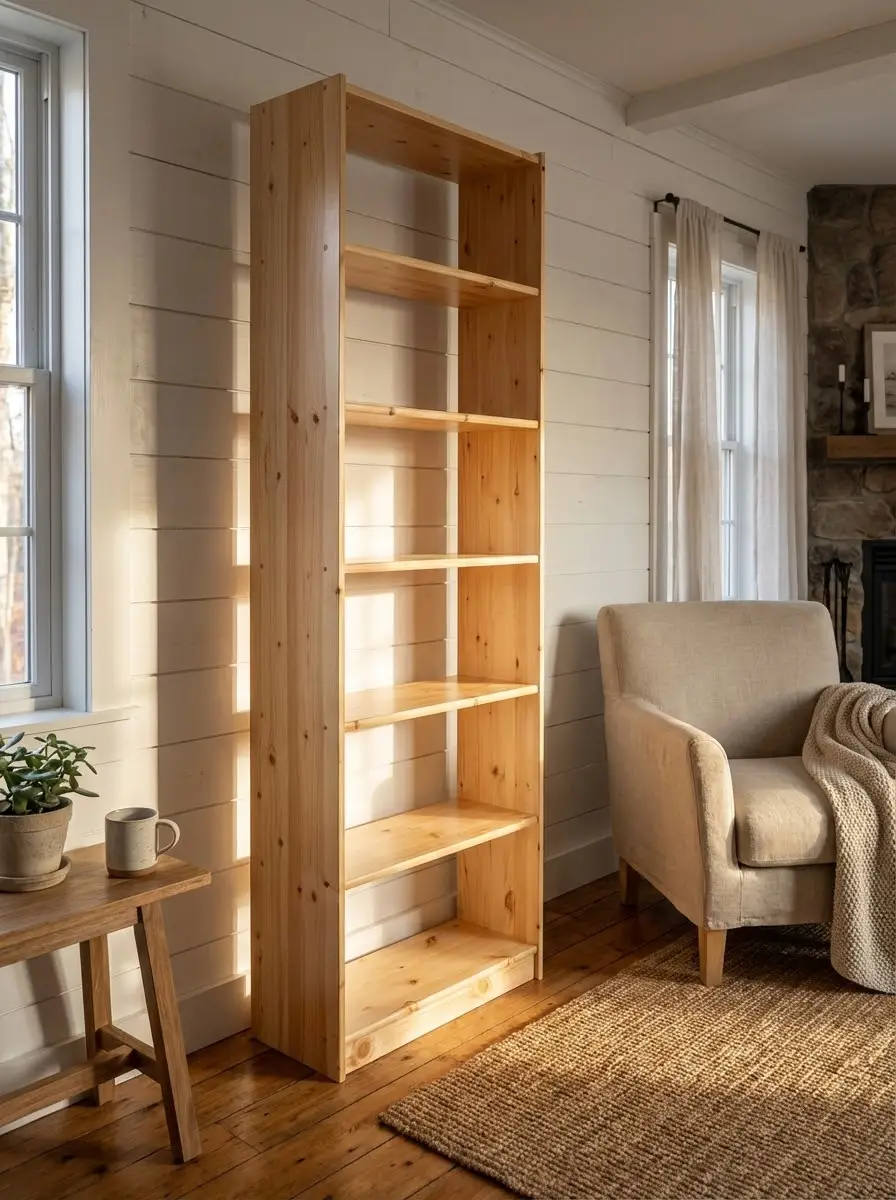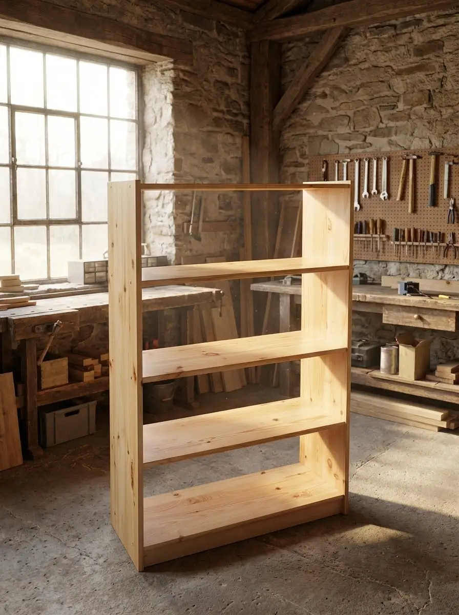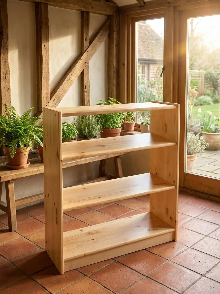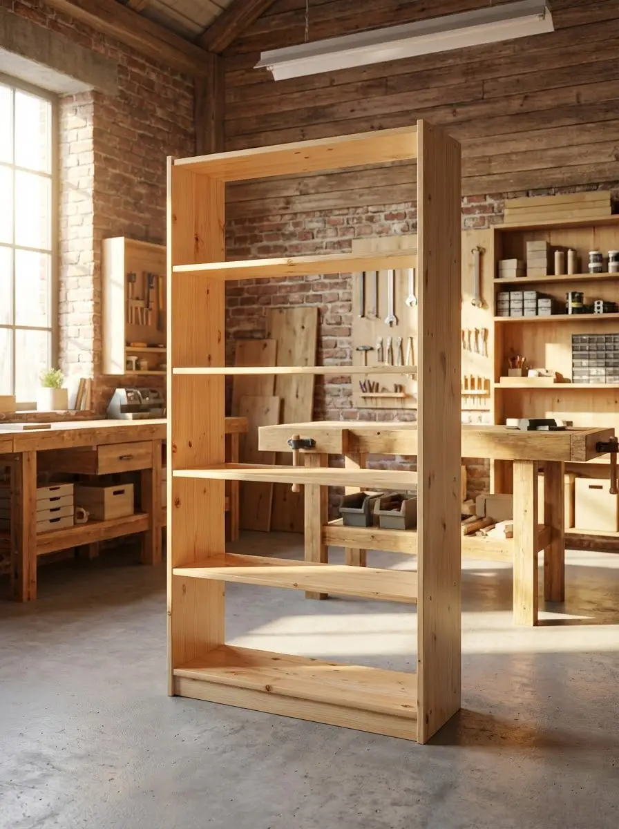 Мебель из натурального дерева хорошо переносит перепады температуры и влажности. Такой стеллаж можно установить не только в гараже, но и на балконе или в кладовке для хранения домашних заготовок. Изделия, представленные в этом разделе, изготовлены из массива сосны и продаются без отделки или в бесцветном лаке. Стеллажи отличаются по размерам и количеству полок, есть прямые и угловые модели.
