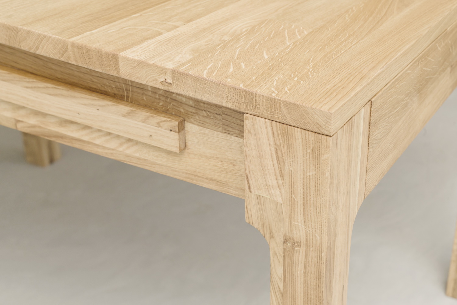 Раздвижной стол изготовлен из натурального и долговечного материала – массива дуба. Доступно шесть вариантов отделки: бейц-масло, дуб отбеленный, дуб паркетный, дуб венге, тёмная вишня и итальянский орех. Вы можете выбрать тот вариант, который лучше всего подойдёт к вашему интерьеру. Стол имеет массивные устойчивые ножки.