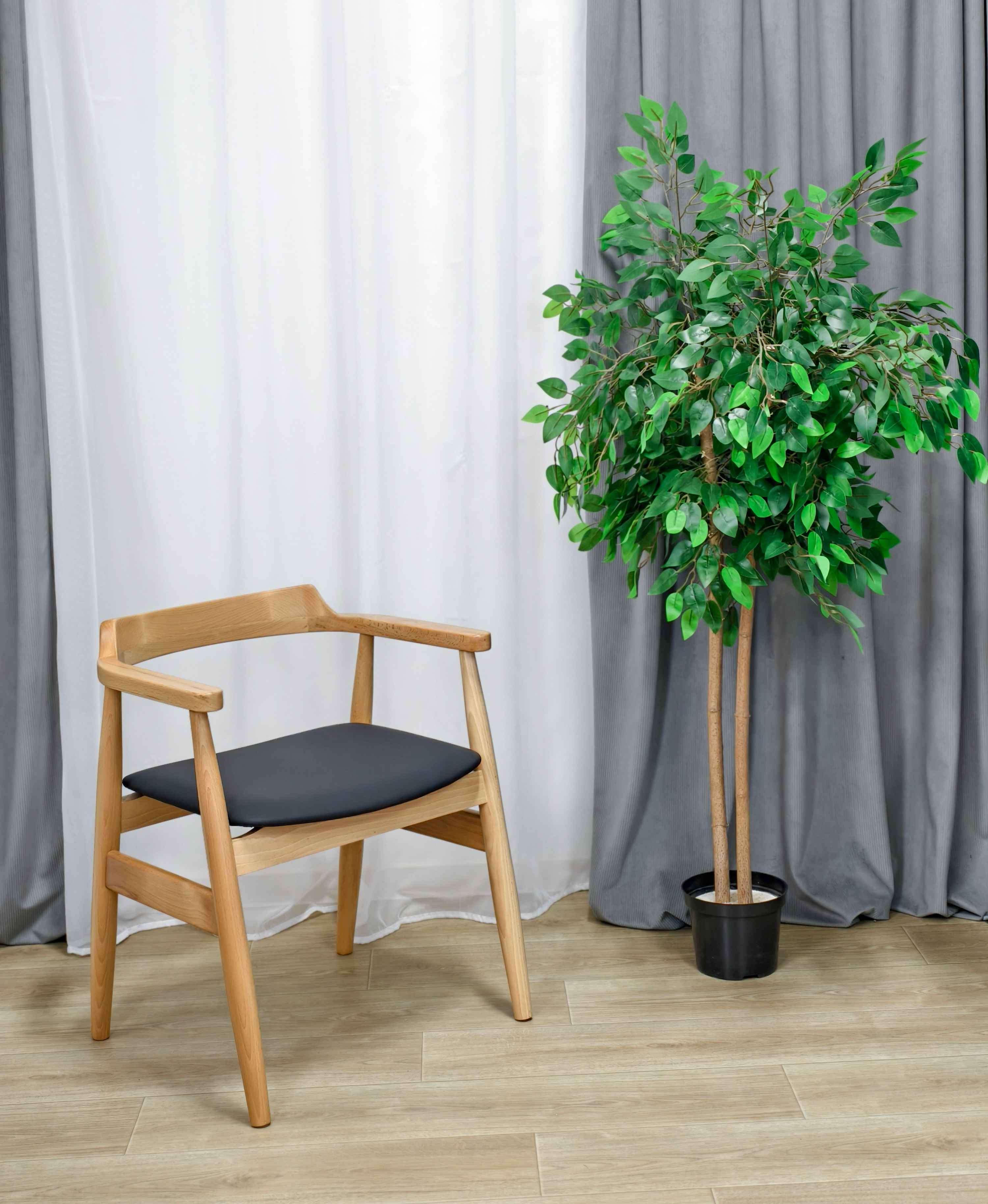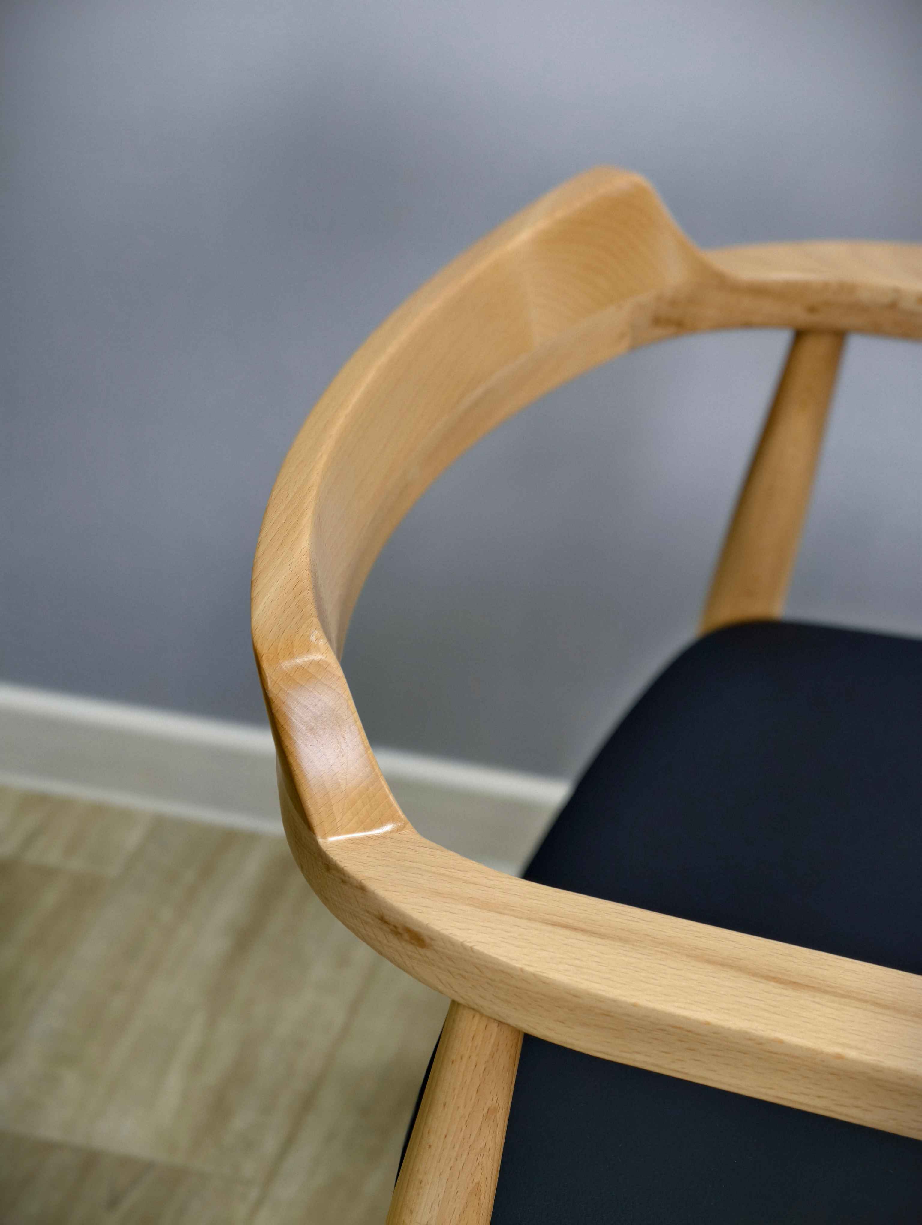 Стул SHT-S204 — воплощение утончённой простоты и благородства форм. Его плавные линии и сбалансированные пропорции создают ощущение лёгкости и элегантности. Мягко изогнутая спинка и плавные изгибы подлокотников образуют цельную архитектурную композицию, в которой функциональность встречается с эстетикой. Тёплый оттенок бука и текстура рогожки придают стулу характер предмета, созданного для пространств, где ценят детали и комфорт.