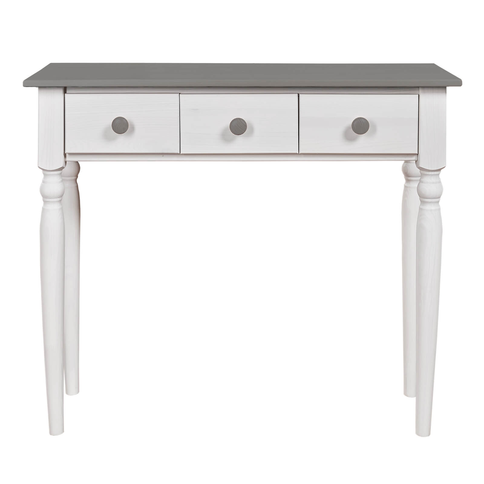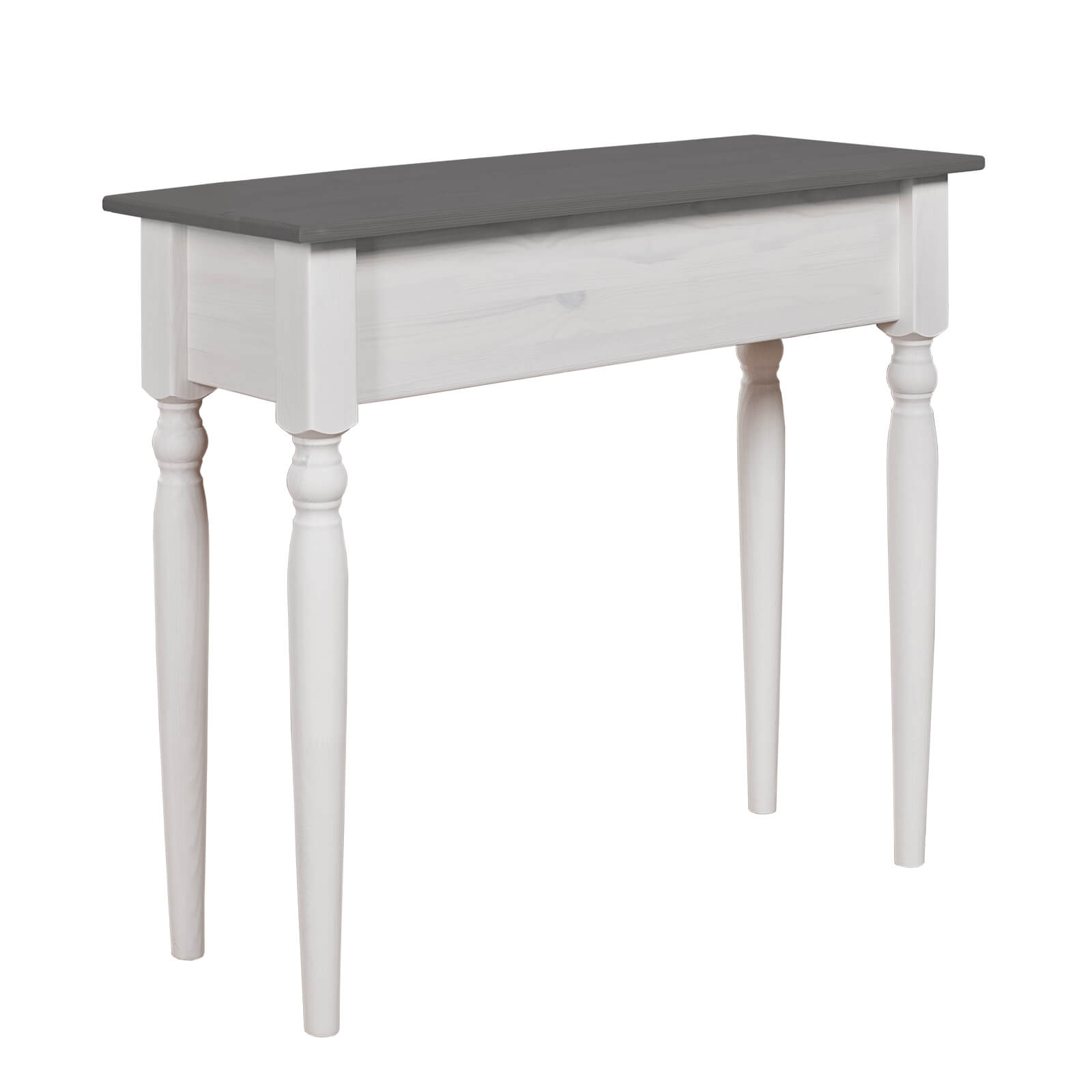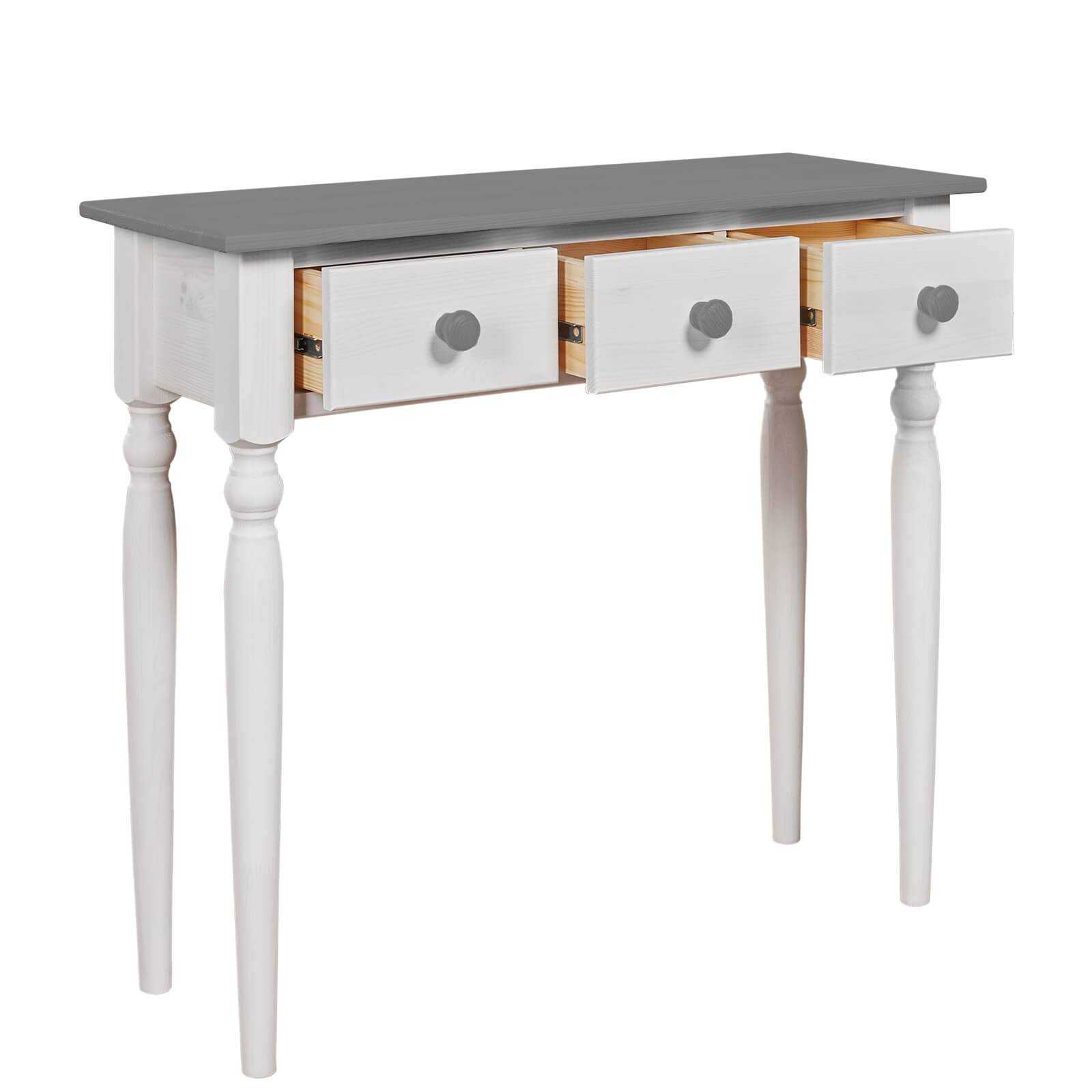 Эта модель консоли представляет собой небольшой столик с тремя выдвижными ящиками из массива сосны. Высокие резные ножки придают ей изящный вид, а ящики позволяют хранить мелочи, которые всегда должны быть под рукой. Консоль может служить подставкой для лампы, вазы или памятных вещей. Над ней можно повесить зеркало или картину, что добавит интерьеру завершённости.